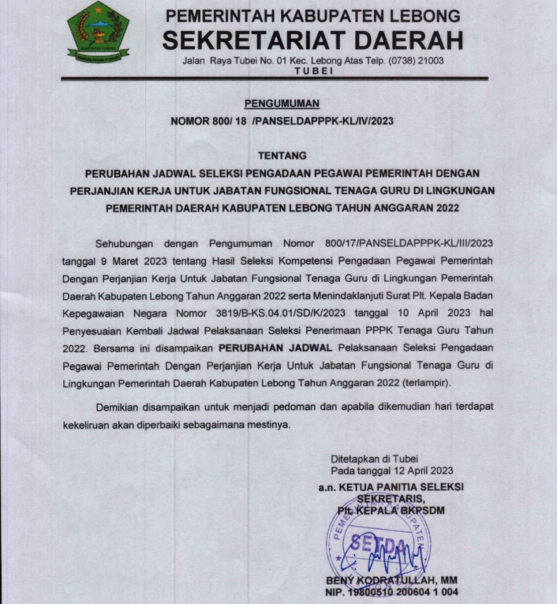 PERUBAHAN JADWAL SELEKSI PENGADAAN PPPK UNTUK JABATAN FUNGSIONAL TENAGA GURU