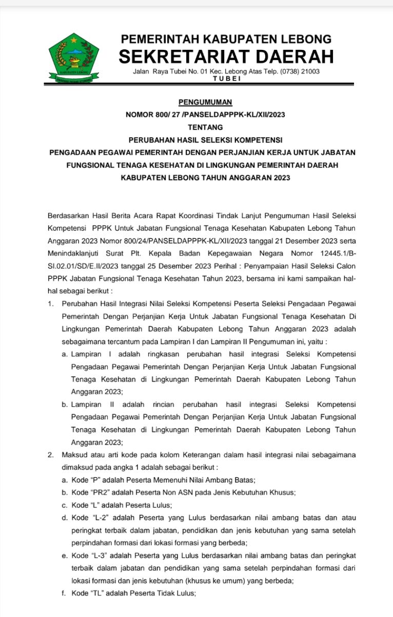 Selamat Datang di website Badan Kepegawaian dan Pengembangan Sumber Daya Manusia (BKPSDM) Kabupaten Lebong