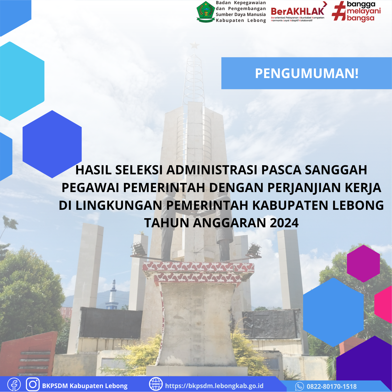 Berikut kami informasikan kepada seluruh peserta tentang hasil seleksi administrasi pasca sanggah pengadaan Pegawai Pemerintah dengan Perjanjian Kerja di Lingkungan Pemerintah Kabupaten Lebong Tahun Anggaran 2024!!!